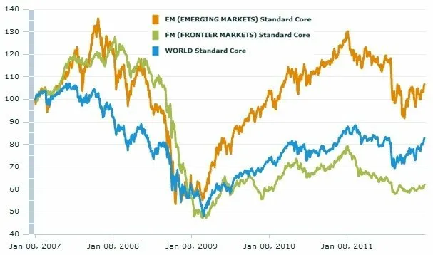 Rok 2011 nebyl pro akcie vůbec příznivý. Index MSCI World zakončil rok ve ztrátě 4,5 procenta. Většina trhů však dopadla mnohem hůře. Například akcie německých a francouzských firem poklesly v průměru o 17 procent, polských o 30 procent a rakouských a indických o 36 procent. Ještě hůř dopadli investoři s akciemi v Egyptě s minus 47 procenty. Absolutně nejhorší vývoj mají za sebou akcie řeckých firem, které průměrně spadly o 62 procent, tj. téměř na třetinu hodnoty ze začátku roku, a oproti roku 2007 mají pouze desetinovou hodnotu.