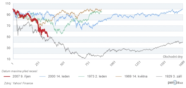 Pokud by nynější krize působila na akciové trhy stejně jako dvě výše zmíněné, měli by investoři polknout a smířit se s tím, že jestli nechtějí přijmout ztrátu, čeká je dlouhé období čekání. Americký Dow Jones Industrial Average(DJIA) se na maximum z roku 1929 vrátil o 25 let později (ovšem nutno podotknout, že druhá světová válka nebyla pro akcie nějak zázračné období). Japonská bublina, kdy index Nikkei 225 dosáhl na uzavírací hodnotu 38 916 bodů, zatím zůstává a dlouho i bude nepokořená. Nynější hodnota indexu je zhruba 7180 bodů.
