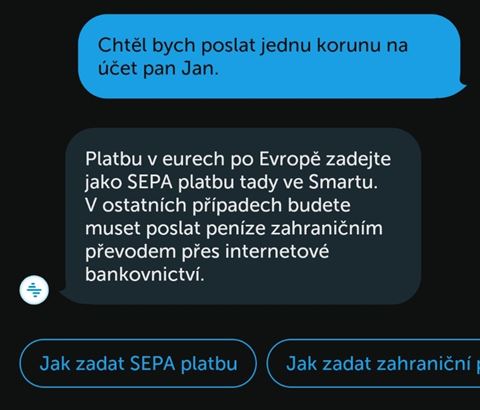 Například při zadání „prosím pošli jednu korunu na účet pan Jan“ se sice zeptá, komu chcete platbu poslat, po odpovědi „pan Jan“ už ale najde správný účet z uložených šablon.