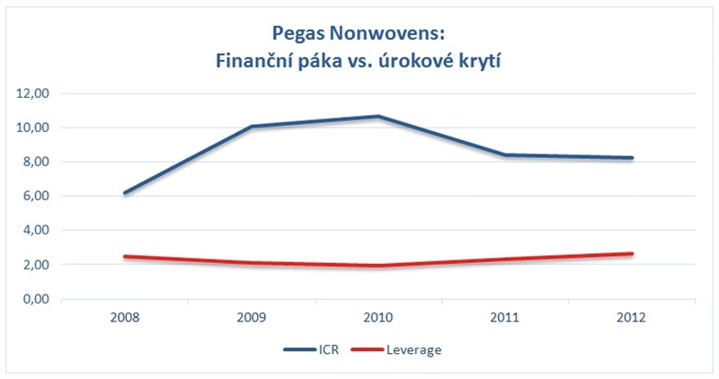Za výborným výkonem hledejme investice, za investicemi hledejme dluhy. Management společnosti si uvědomuje rizika zadlužení a zajišťuje se vůči změně úrokových sazeb úrokovými swapy a při investicích, jako je ta egyptská, se snaží vyjednat podmínky s odběrateli tak, aby produkce nových kapacit byla dopředu z velké části prodaná. Finanční páka (poměr celkového kapitálu ke kapitálu vlastnímu, leverage) na úrovni 2,6, s níž společnost operuje, je činitelem, který „má na svědomí“ excelentní rentabilitu. Důkazem uspokojivého managementu dluhu je i ukazatel úrokového krytí (poměr zisku před zdaněním a úroky k nákladovým úrokům, ICR) jehož „bezpečné“ hodnoty se pohybují nad úrovní 5. Jak můžeme vidět z grafu, společnost si udržuje velkou rezervu.