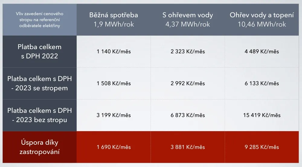 Vláda podle svého místopředsedy Víta Rakušana sahá k zastropování kvůli tomu, že podle současných tržních cen by jedna kWh elektřiny příští rok stála kolem 12 korun. „To je cena, která mohla způsobit společenský rozvrat a reálnou chudobu širokých vrstev obyvatelstva,“ vysvětluje Rakušan.
