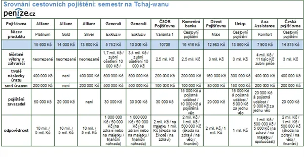 Produkty od Allianz, jejíž ceny jsou příznivé při cestování po Evropě, vyjdou pro cestu do Asie skoro nejdráž, předstihne je jen pojištění Komerční banky. Komplexní, ale drahé je i pojištění od České pojišťovny, které stojí 14 875 Kč.