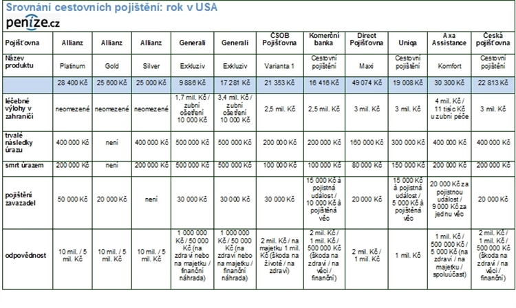 Nejdráž vyšlo cestovní pojištění u České pojišťovny a Komerční banky, které si účtují 9 975, respektive 9 909 Kč. V případě České pojišťovny odpovídá pojištění levnější nabídce ostatních společností, Komerční banka nabízí krytí léčebných výloh v zahraničí, trvalých následků úrazu nebo pojištění zavazadel v nižším rozsahu než levnější konkurence.