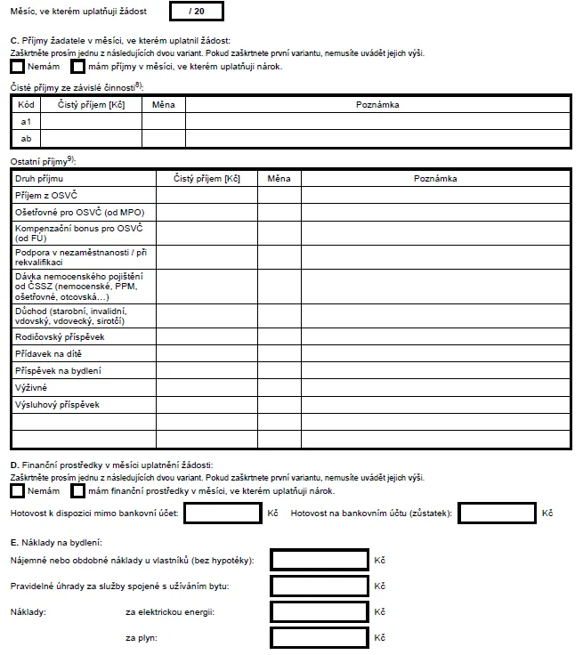 Například na druhé straně formuláře má žadatel vyčíslit své čisté příjmy ze „závislé činnosti“. Kdo by rovnou nevěděl, že jde o příjem ze zaměstnání nebo z práce na dohodu, dostane na konci stránky úředním jazykem vysvětlení, ze kterého se mu definitivně zamotá hlava: