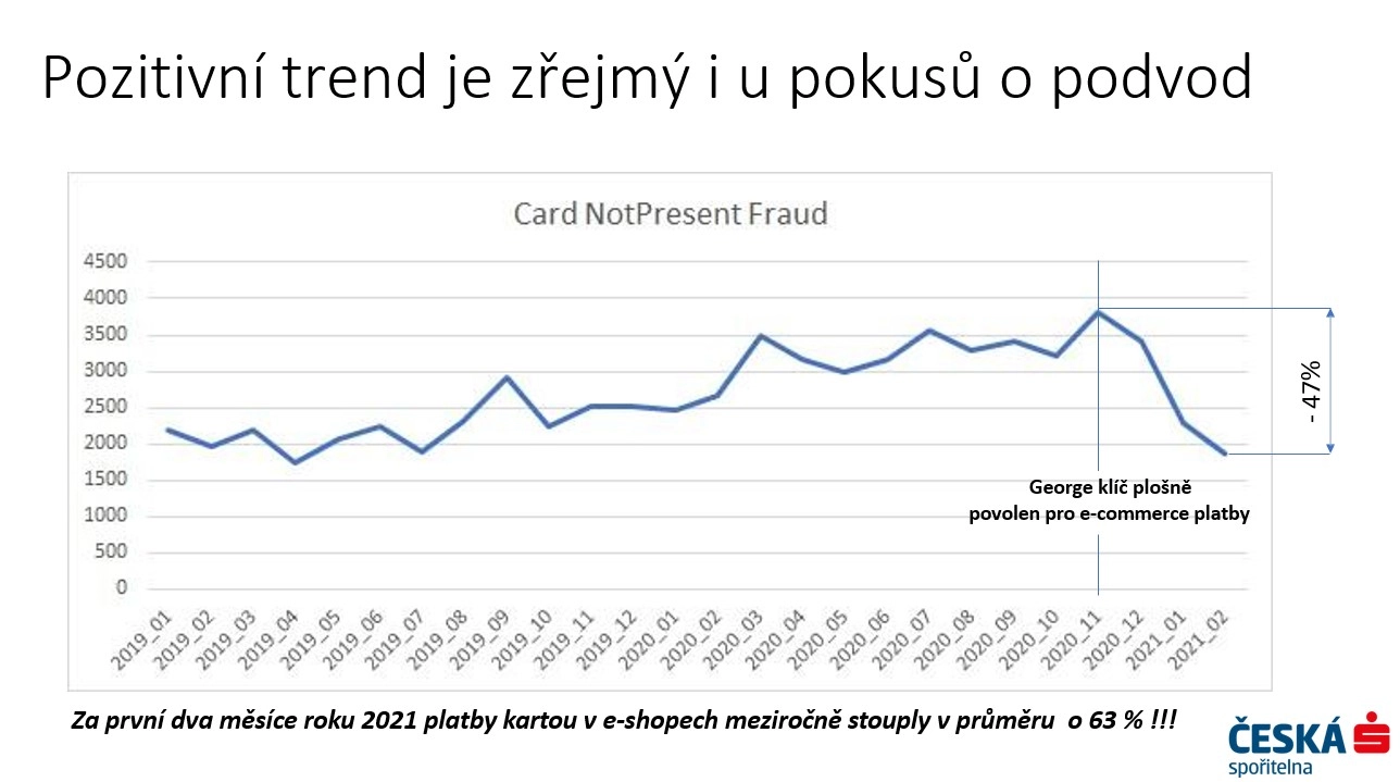 Banky proto postupně přidaly do svých aplikací (buď přímo, nebo jako samostatný „klíč“) i potvrzování online plateb kartou. Jan Dachovský z České spořitelny si pochvaluje, že po přechodu na George klíč výrazně klesl počet pokusů o podvod, přestože celkový počet plateb kartou zároveň výrazně stoupl.