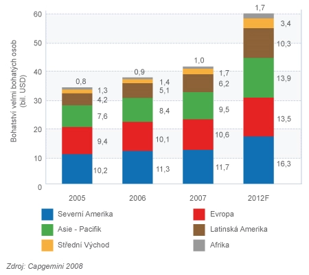 Předpověď růstu majetku velmi bohatých osob 2005 -2012E