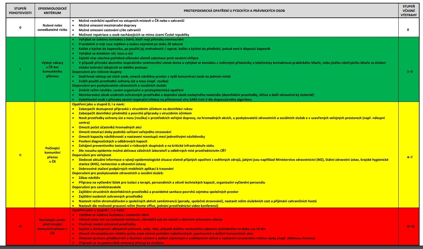 Navrhovaná opatření pro jednotlivé stupně. Klikněte pro zvětšení. Zdroj: ministerstvo zdravotnictví