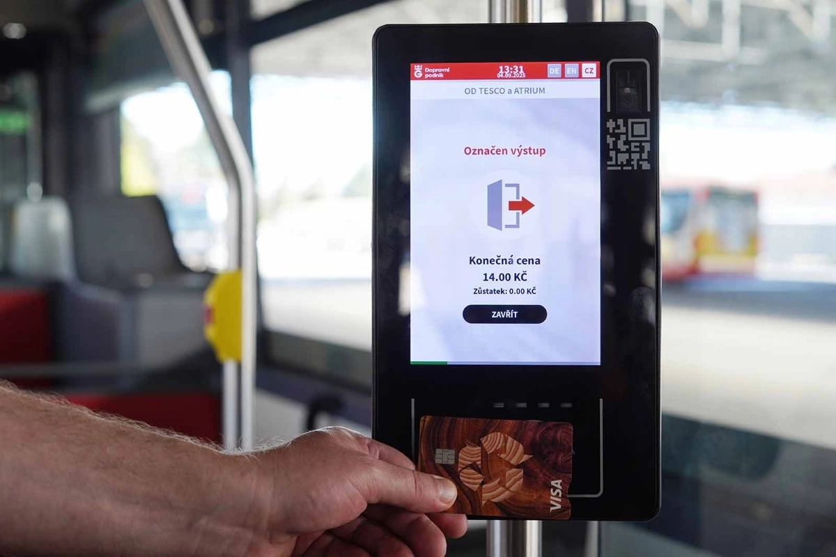 Začátek je stejný jako při nákupu jízdenky ve většině jiných měst: při nástupu do tramvaje, trolejbusu nebo autobusu přiložíte ke čtečce blízko dveří klasickou platební kartu. Může být prakticky od jakékoliv banky – a nejen plastová. Stačí i digitální karta v mobilu nebo hodinkách.
