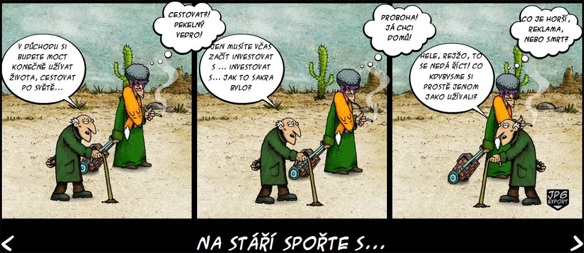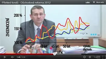 Jednu moc pěknou reklamu prozkoumal kritickým okem Michal Kašpárek. Tou reklamou je web o důchodové reformě, který nechalo sestrojit ministerstvo práce a sociálních věcí. No nebrali byste to – mrkněte na záběr z videa: ať si zvolíte penzijní fond s jakoukoli investiční strategií, nakonec vám stejně každý zhodnotí počáteční investici zhruba o padesát procent. Některá strategie sice s sebou nese výkyvy, ale určitě se nestane, že by snad fond kdy šel do minusu...