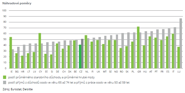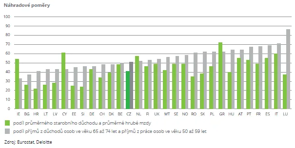 Jenže když budeme chtít zachovat současnou výši poměru penzí ke mzdám, pošle to důchodový systém do dlouhodobě neudržitelných deficitů. Vyplývá to z analýzy společnosti Deloitte.