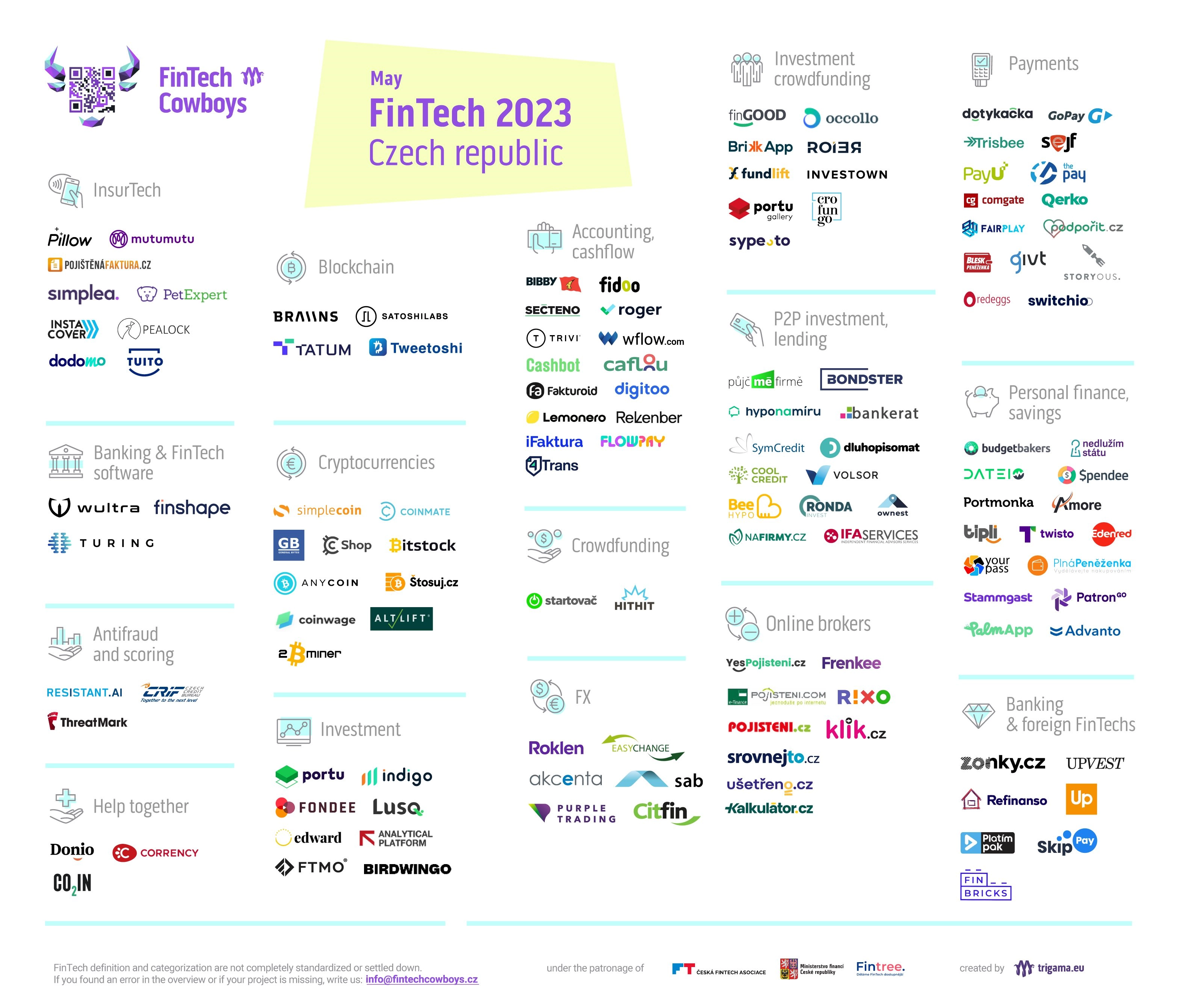 Tady bych určitě doporučil fintechovou mapu, kterou tvoříme s kolegy z FinTech Cowboys, Fintree a ministerstva financí a která rozděluje jednotlivé společnosti podle oblastí, v nichž působí.