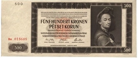Během protektorátu Čech a Moravy byla v roce 1942 vytištěná pětisetkoruna s figurálním portrétem barokního českého malíře Petra Brandla. Po 2. světové válce se na další pětisetkorunové bankovceobjevuje portrét básníka Jána Kollára. S ní se platilo až do měnové reformy roku 1953. Po delší přestávce, kdy pětisetkorunový nominál na čas zmizel, byla v roce 1973 vydaná hnědá pětistovka s figurálnímu postavami ozbrojených vojáků.