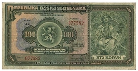 První papírová stokoruna nově vzniklého Československého státu byla navržená v secesním stylu a její výtvarnou úroveň hodnotili lidé velmi vysoko. S její přípravou a vytištěním se však příliš otálet nemohlo a tomu odpovídala její kvalita. Byla vytištěna knihtiskem a jakmile se ocitla v oběhu, padělatelé se chopili příležitosti. „Stala se jednou z nejvíce padělaných československých státovek. Známe deset typů tištěných padělků různé kvality,“ uvádí náš přední odborník Jan Bajer.