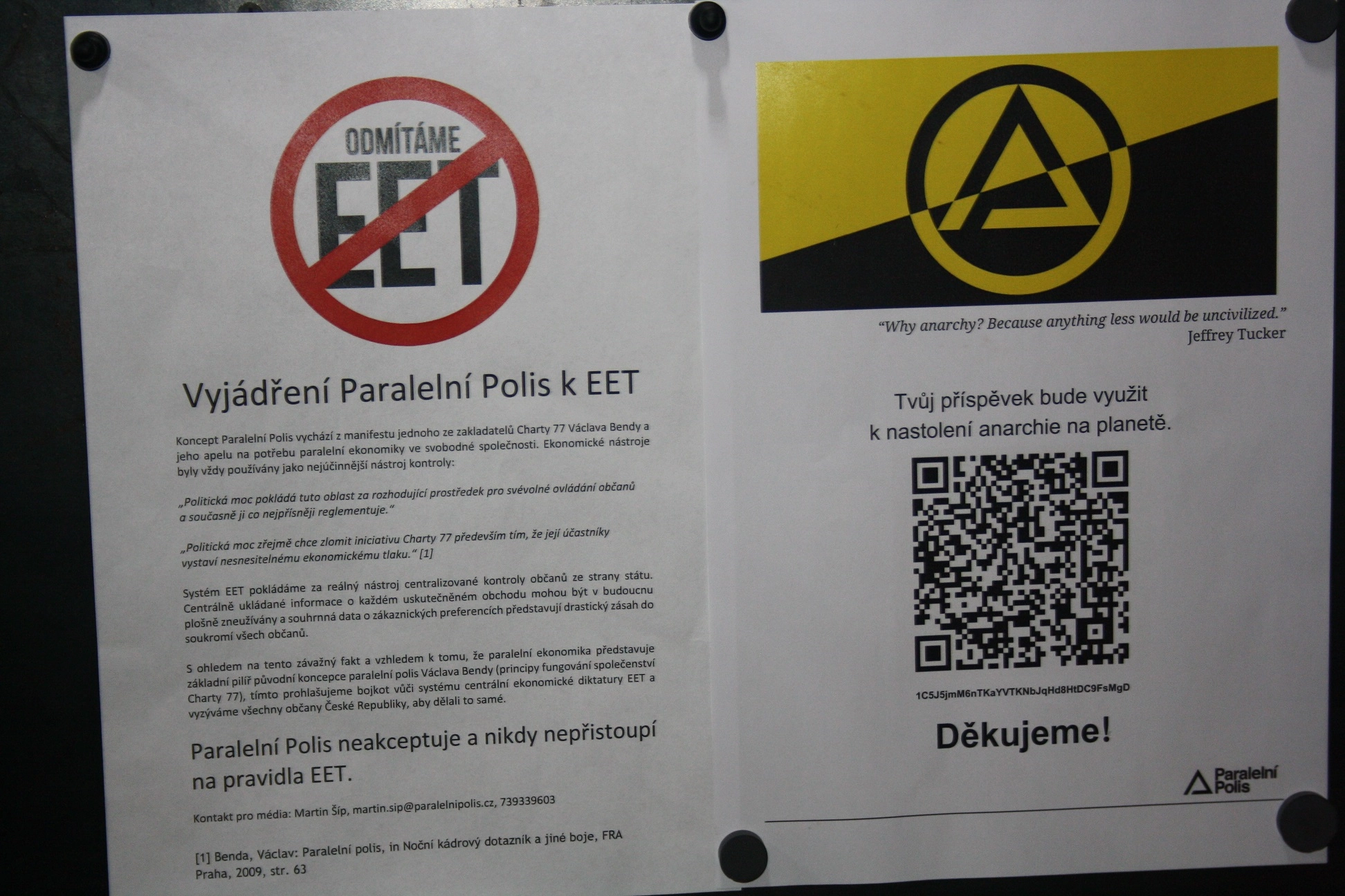 Paralelní Polis byla založena ke vzdělávání v oblasti decentralizace a propagace technologií, které umožňují větší individuální svobodu. EET považujeme za nemorální a další krok státu špatným směrem. Jedná se o nástroj centralizace ekonomické moci. V Paralelní Polis ji z ideových důvodů prostě zavést nemůžeme, jednalo by se o přímé popření toho, co propagujeme.