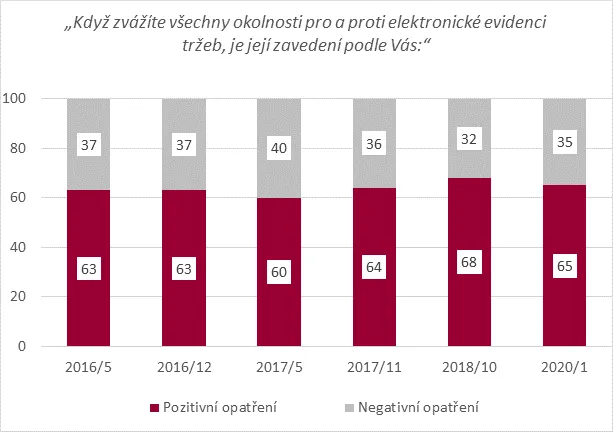 Takové jsou výsledky lednového výzkumu agentury STEM, která ho provedla pro ministerstvo financí. Dotázáno bylo 1055 osob starších 18 let. Agentura podobné průzkumy dělala už v letech 2015 až 2018 a výsledky se příliš nemění. Podpora EET v nich zůstává stabilní.
