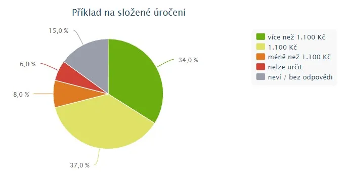 Lidé si mohli vybrat ze čtyř odpovědí. Tu správnou – „více než 1100 korun“ – zvolilo 34 procent účastníků průzkumu. Největší část lidí – 37 procent – zvolila výsledek „(přesně) 1100 korun“. Skoro třetina se pak správnému výsledku ani nepřiblížila.