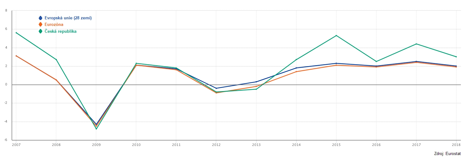 Od roku 2014 až do roku 2018 rostlo HDP Evropské unie tempem zhruba dvě procenta za rok. Došlo tedy k návratu na hodnoty podobné těm před hospodářskou krizí. Česká republika a ostatní země Visegradu si vedly o něco lépe.