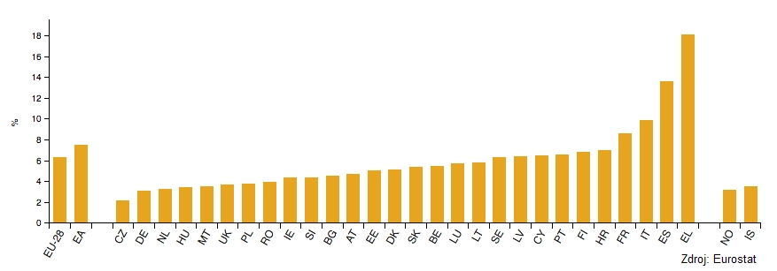 Nezaměstnanost se v mnoha zemích pohybuje na rekordně nízkých číslech, výjimkou jsou země na jihu Evropy, které se dosud úplně nevzpamatovaly z ekonomické krize. Právě kvůli tomuto faktoru eurozóna ve statistikách nezaměstnanosti zaostává za Evropskou unií jako celkem. Země jako Řecko nebo Španělsko se dosud navíc potýkají s velkou nezaměstnaností mladých lidí.