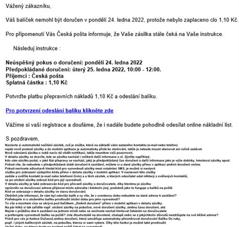 Opravdu čekáte balík z daleké ciziny, u kterého máte zaplatit clo? A jestli ano, neodradí vás špatná čeština a poněkud nesmyslný text?