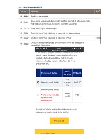 I skutečná Česká pošta má občas podivné praktiky, ale tohle je moc: proč byste měli platit přepravní poplatky, když vás nezastihla doma? Skutečný balík nezmizí, ale zůstane přinejmenším na poště k vyzvednutí.