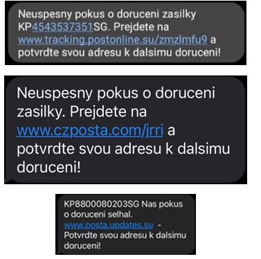 Česká pošta má doménu ceskaposta.cz. Složité napodobeniny jako postonline.su nebo czposta.com jsou podezřelé.
