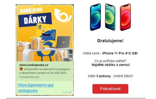 Kdo by nechtěl iPhone... Ale vážně věříte, že je státní podnik rozdává takhle snadno? A co ta doména gameprov.gg?