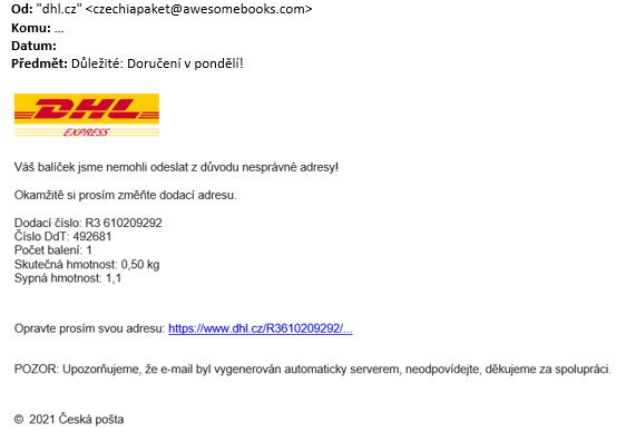 Tohle neposílá Česká pošta. Ale ani DHL. Koukněte na skutečného odesílatele: awesomebooks.com?