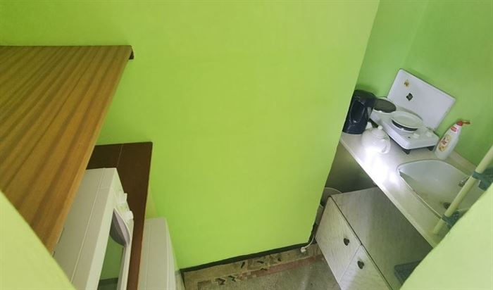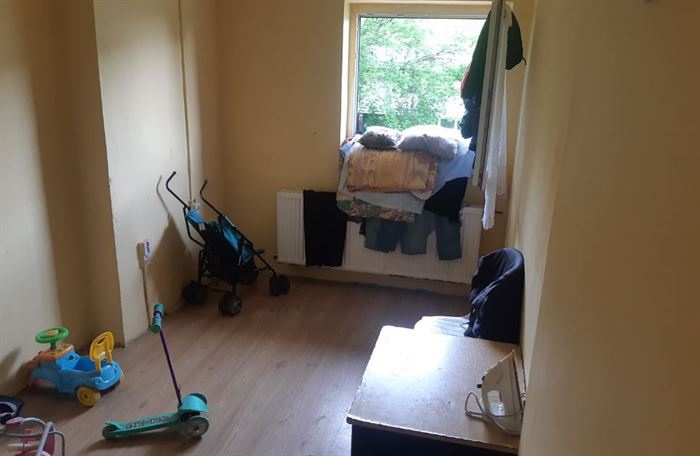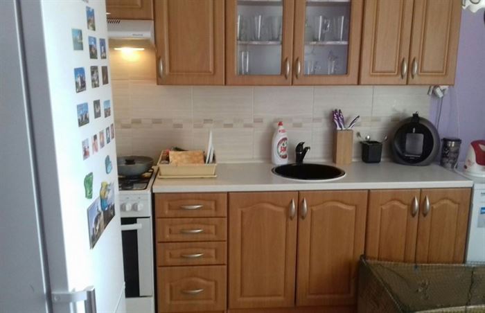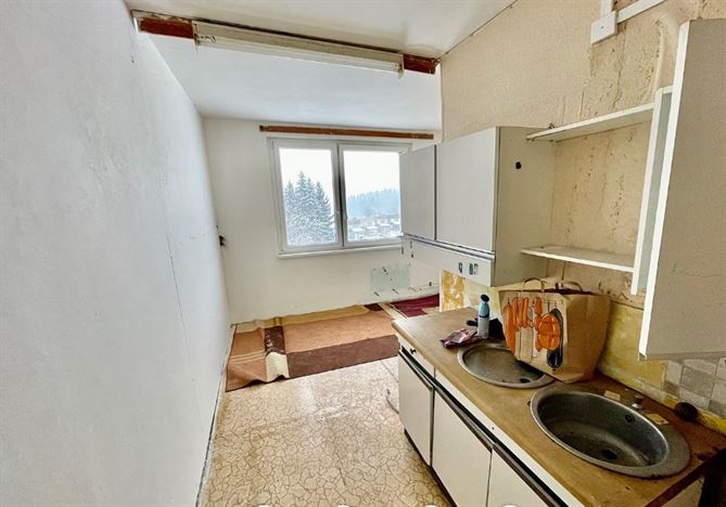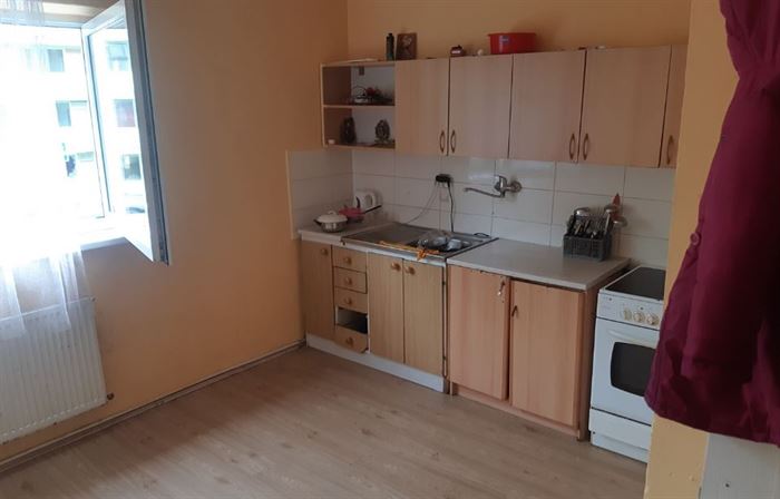 Byt se nachází ve 4. patře panelového domu a má původní umakartové jádro. Součástí vybavení je i kuchyňská linka se sporákem. Podlahy jsou laminátové.