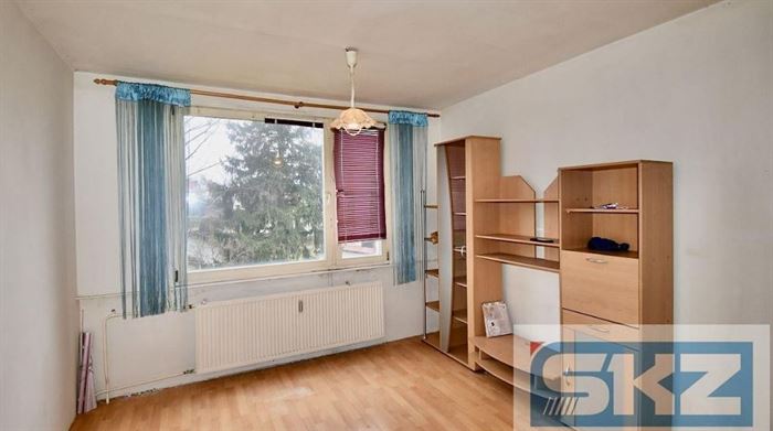 Má původní parketovou podlahu a nabízí se bez kuchyňské linky.