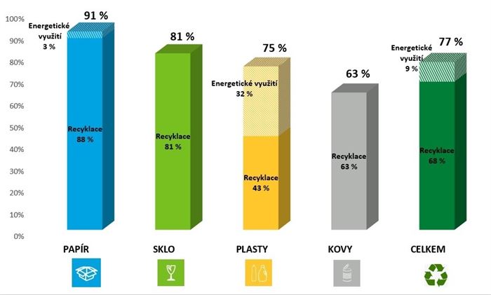 Pár směsných grafů a přehledů. Kolik se čeho zrecykluje, kolik se čeho spálí. A jak se vyznat v symbolech.