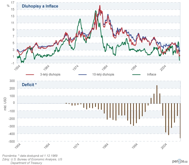 Panují obavy, že čím víc se bude americká vláda zadlužovat, tím větší výnos bude muset investorům nabídnout. Jenže přímá vazba mezi dluhopisovými výnosy a výší deficitu není příliš silná. V minulosti dluhopisové výnosy klesaly, i když se vláda ve velkém zadlužovala, a naopak rostly na přelomu století, kdy hospodařila s přebytkem a dluh snižovala. To je podle expertů způsobené vazbou na hospodářský cyklus. „Vláda se více zadlužuje v době recese či stagnace ekonomiky, kdy je i nízká inflace. Takže investoři nemají příliš důvod požadovat vyšší výnosy,“ říká Jan Vedral, předseda představenstva a hlavní investiční manažer společnosti Conseq.