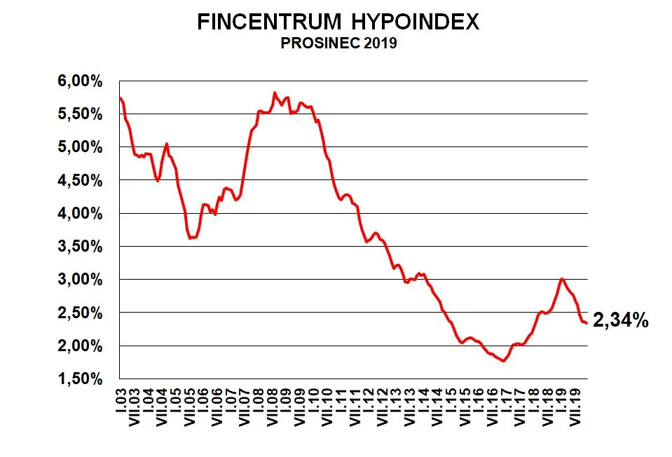 Průměrný úrok u hypotečních úvěrů v prosinci klesl na 2,34 procenta z listopadových 2,36 procenta. Úrokové sazby u hypoték na konci roku 2019 tak zůstávaly stabilní, když v říjnu průměrný úrok dělal 2,35 procenta. Ukazuje to statistika Fincentrum Hypoindex, která vychází ze skutečných hodnot u nově sjednaných smluv včetně refinancování.