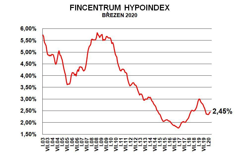 Průměrný úrok hypoték v březnu stoupl na 2,45 procenta z únorových 2,42 procenta a přiblížil se tak úrovni, kde byl naposled loni v září. Ukazuje to statistika Fincentrum Hypoindex, která vychází ze skutečných hodnot u nově sjednaných smluv včetně refinancování.