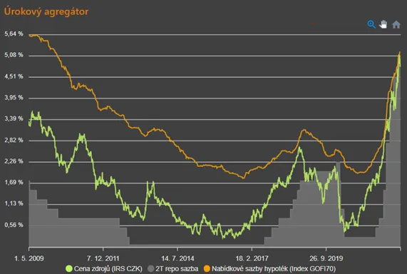 Inflace stále roste, čeká se i další zvyšování úrokových sazeb ze strany České národní banky. Bankovní rada zvýšila sazby naposledy na konci března o půl procentního bodu a další zvýšení se čeká dnes (byť tentokrát může být nižší vzhledem ke zpomalujícímu výkonu ekonomiky). Další růst úroků ze strany ČNB opět zvýší tlak na zdražování úvěrů a tedy i hypoték.