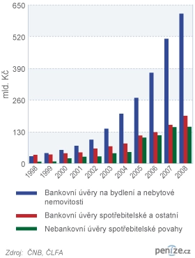 Navzdory těmto číslům se objem poskytnutých úvěrů českým domácnostem zvyšuje. Na konci roku Češi dlužili 950 miliard korun, což je polovina jejich disponibilních příjmů a čtvrtina českého HDP. Zpráva ČNB sice upozorňuje, že tempo růstu úvěrů klesá, nicméně u bankovních spotřebitelských úvěrůstále dosahuje přes dvacet procent v meziročním srovnání. U hypotéktoto tempo v dubnu kleslo na 17 procent.