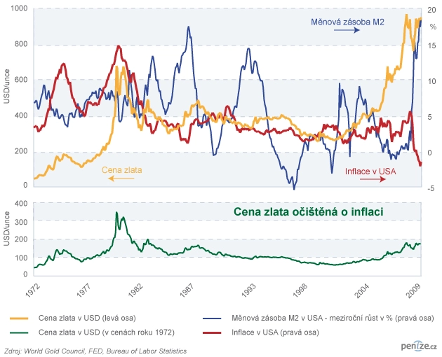 Jenže kupovat zlato kvůli obavám z inflacese dnes může zdát zbytečné. Ceny mají spíše tendenci klesat než růst. Navíc přední ekonomové v dohledné době několika čtvrtletí až let žádnou inflační erupci nečekají. Kvůli recesi se totiž největší světové ekonomiky dostaly do situace, kdy jsou výrobní kapacity využity na 60 až 70 procent a nezaměstnanost je vysoko nad svou přirozenou mírou. A tam ještě pár let zůstane. Proto se tlaky na růst cen nečekají. Naopak vlády, například americká, se snaží inflaci rozhýbat kvůli obavě, že deflace neboli pokles cenového hladiny pošle ekonomiku do ještě hlubší recese.