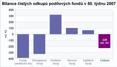 Pro fondy byl uplynulý týden jednoznačně letos tím nejhorším. Na téměř čtvrtmiliardovém odlivu se ale podepsaly pouze fondy peněžního trhu a dluhopisové, což lze považovat jen za sezónní výkyv. Ovšem jeho rozsah přes 700 milionů korun stáhl dolů celou statistiku.