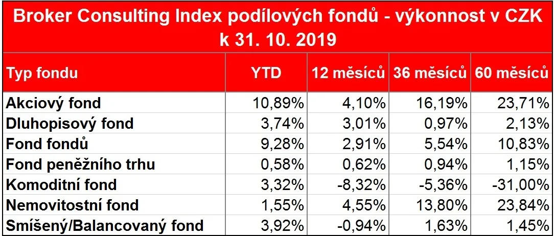 Akciové fondy letos vydělaly 10,89 procenta a vymazaly tak propad z konce roku 2018. Za posledních dvanáct měsíců připsaly – při přepočtu na koruny – 4,1 procenta. Vyplývá to z dat za celý trh, na jejichž základě sestavila společnost Broker Consulting svůj Index podílových fondů.