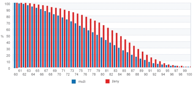 O předpokládaném věku dožití jednotlivců právě vstupujících do důchodového věku v ČR informuje graf 1. Každý si může zjistit, s jakou pravděpodobností se dožije jakého věku (podle aktuálních úmrtnostních tabulek). To ale investičnímu poradci při řízení investičního portfolia konkrétního klienta v distribuční fázi příliš nepomůže. Musí počítat s variantou, že klient je dlouhověký, jinak by mu portfolio mohlo „vyschnout“ dřív než zemře.