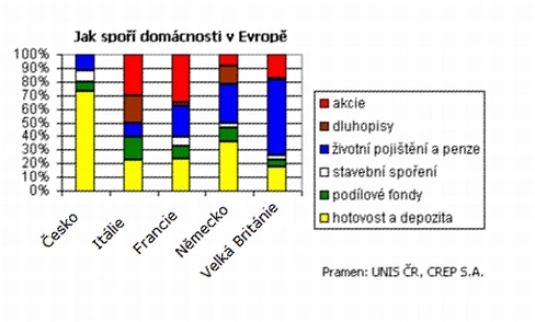 Naši západní sousedé už delší dobu chápou, že důchody odpovídající slušné životní úrovni ve stáří jim stát nezaručí, přijali nepříznivý demografický vývoj jako holý fakt a raději vzali svůj osud a úspory do vlastních rukou. Investice do cenných papírů v Německu dosahují asi 30 procent veškerých úspor, což ve srovnání se zbytkem západní Evropy je docela nízké číslo. Ovšem teprve českých šest procent je opravdu zbytečně málo, o vyšší zisk se necháme okrádat bankami (v drtivé většině vlastněnými v zahraničí). Spoření na účet nám vesměs bohatší důchod nezajistí a už vůbec nás neochrání před inflací. Slovo akcie má však v naší vlasti stále nádech hazardu, neprůhlednosti a velkého byznysu. A když už se dnes někdo odváží nakoupit akciové či dluhopisové podílové listy, čeká ho pár procent poplatku za nákup a nějaké to procento poplatku za obhospodařování, což drasticky snižuje očekávaný výnos vzhledem k riziku.