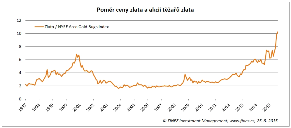 To samozřejmě ještě neznamená, že ceny akcií těžařů zlata budou v dohledné době růst. Ale lze to interpretovat minimálně tak, že ceny akcií těžařů zlata klesly natolik, že je v ceně už zahrnuté očekávání (riziko) dalšího poklesu ceny zlata. Pokud k němu nedojde, měly by v budoucnu ceny akcií těžařů růst i za situace, kdy cena zlata bude stagnovat.
