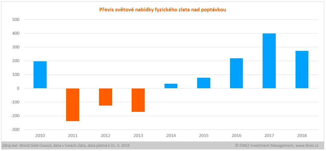 Posledních pět let panoval na trhu se zlatem převis nabídky nad poptávkou. To se možná právě tenhle rok mění. Ovšem zatím jsou to jen dohady, reálná data budeme znát až zpětně.
