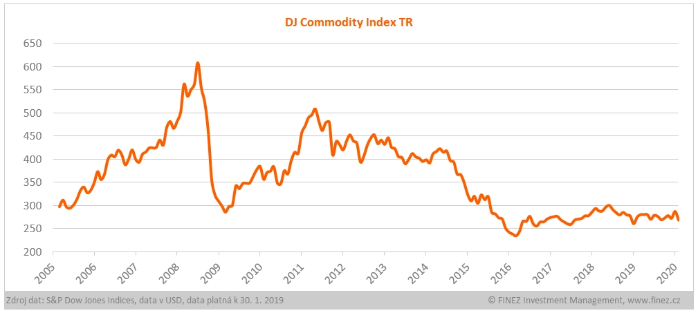Hodnota indexu Dow Jones Commodity, sestaveného z 28 likvidních burzovně obchodovaných komoditních kontraktů, stoupla v roce 2019 o deset procent.