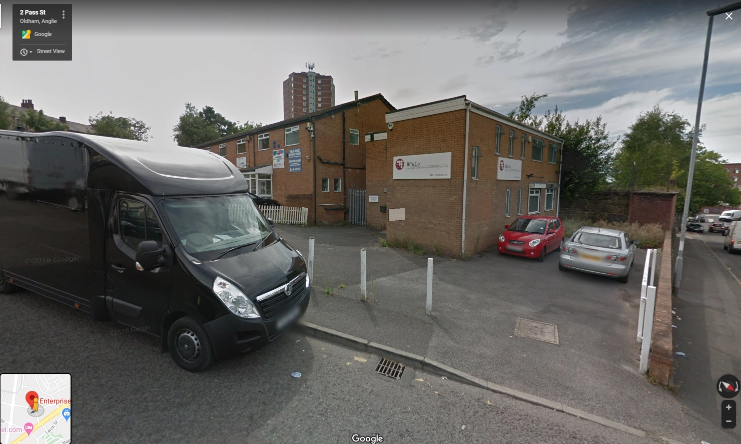 „Enterprise House“. 2 Pass Street, Oldham, OL9 6HZ Manchester. Snímek z Map Google