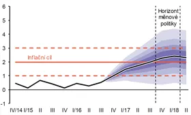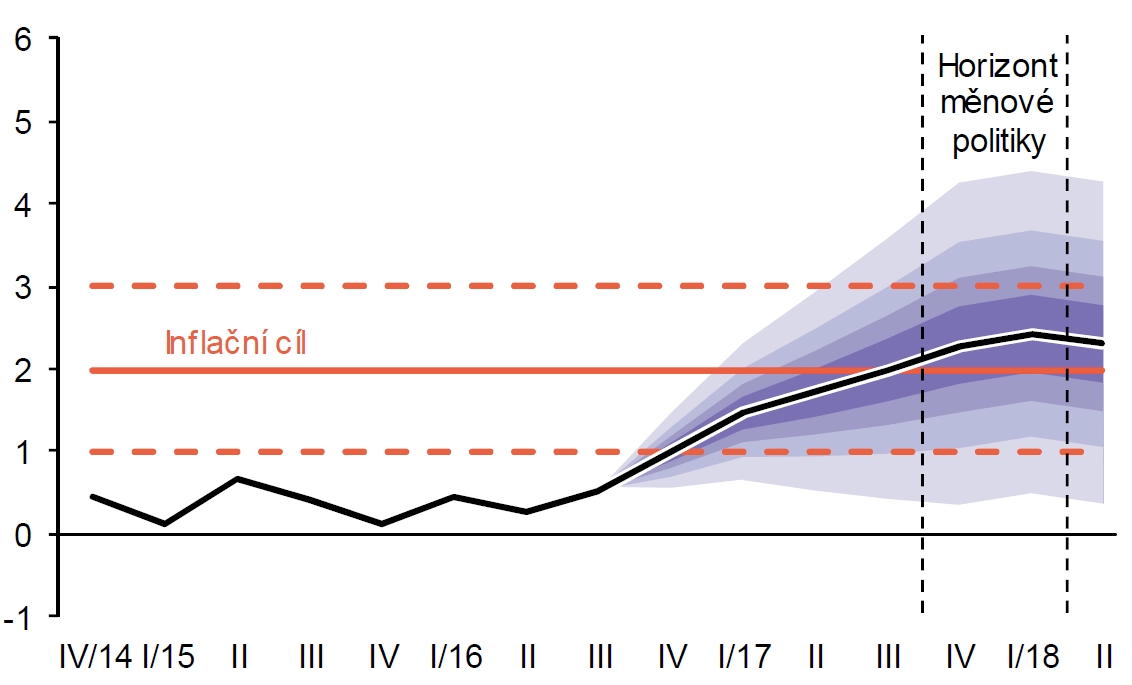 Česká národní banka započala s intervencemi a hájením pevného kurzu s cílem brzdit v České republice deflační tlaky. Jako cíl sleduje udržitelnou inflaci na úrovni kolem dvou procent. Před měsícem jsem psal, že inflace už brzy poroste. A skutečně, v listopadu podle Českého statistického úřadu stoupla meziroční inflace na 1,5 procenta. V průběhu příštího roku by meziroční inflace měla stoupnout nad cílovou úroveň dvou procent. S tímto scénářem počítá i Česká národní banka.