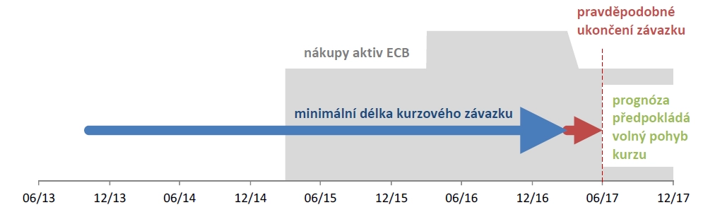 Ve stejném duchu se vyjadřuje i Jiří Rusnok, guvernér České národní banky: „Členové bankovní rady nadále vidí jako pravděpodobné ukončení závazku v polovině roku 2017.“