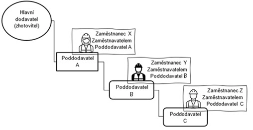 Pokud poddodavatel C nevyplatí svému zaměstnanci Z mzdu do konce období její splatnosti, může se zaměstnanec obrátit na poddodavatele B. Zároveň je ručitelem i Hlavní dodavatel (zhotovitel). Obdobně může postupovat zaměstnanec Y (ručiteli jsou poddodavatel A a hlavní dodavatel). Ale například zaměstnanec Z se nemůže se svým nárokem obrátit na poddodavatele A.
