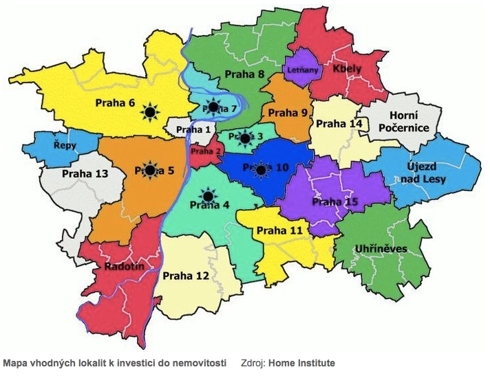 Lokality, které bych v tuto chvíli v Praze doporučoval investorům, jsou vyznačeny hvězdičkou na mapce vpravo. Měly by to být byty v širším centru, dobře dopravně dostupné a občansky vybavené, aby uspěly v soutěži s jinými byty k pronájmu. Vedle Prahy můžu s čistým svědomím doporučit investorům také Brno, tamější realitní trh investorům přeje.