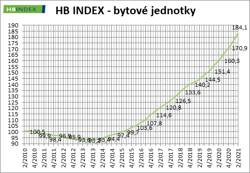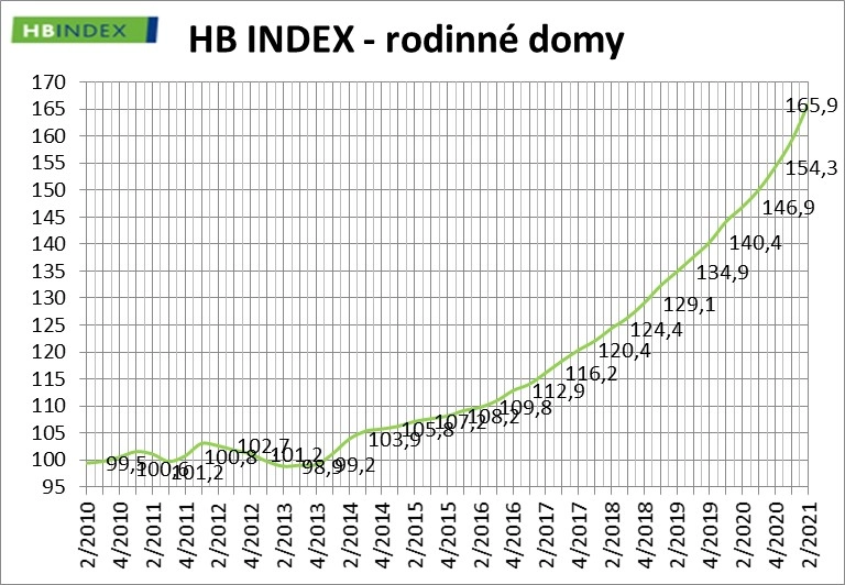I v tomto případě jde o nejvyšší čtvrtletní růst cen přinejmenším od vzniku HB Indexu v roce 2010. Oproti začátku roku 2010 jsou už na víc než dvojnásobné úrovni (o 105 % výš).