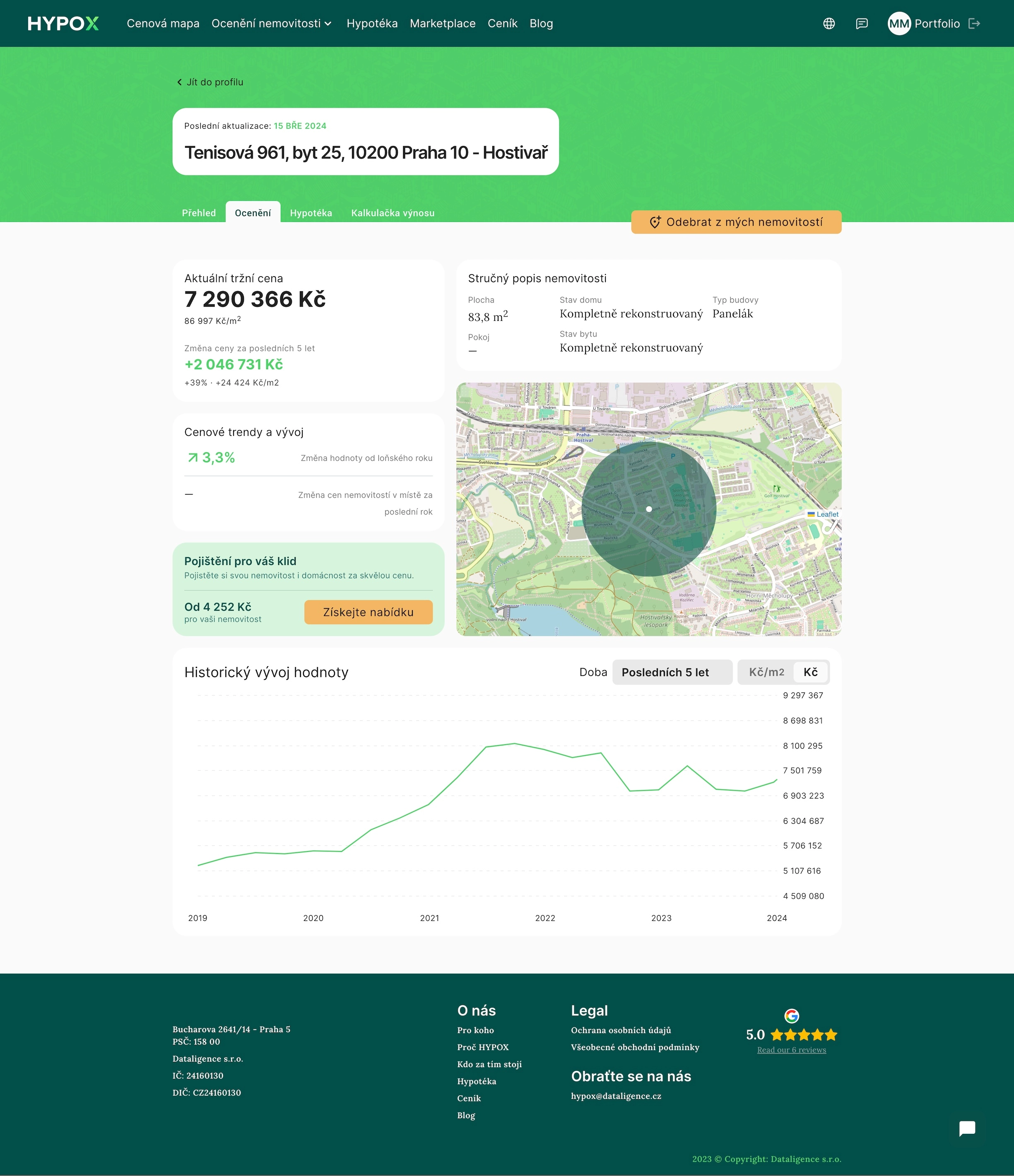 Pokud od cenového odhadu nemovitosti čekáte víc než náhodné číslo, je dobré se podívat, zda službu využívají velké banky a pojišťovny pro své potřeby. Dataligence a HYPOX.cz v roce 2023 zpracovaly pro banky a pojišťovny víc než 190 000 ocenění pro vyřízení hypoték nebo sjednání pojištění na nemovitosti. Kromě důvěryhodnosti to má ještě jeden efekt – v bance i v online aplikaci, kterou můžete využít vy, vyjde stejné číslo. Tím pádem skutečně víte, na čem jste, když například žádáte o hypotéku a potřebujete nemovitost do zástavy.